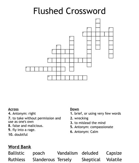 Less Flushed Crossword. Web while searching our database we found 1 possible solution for the: We have 1 possible answer in our database.