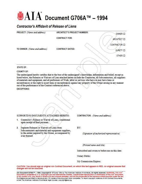 Aia Lien Release Form. Web the aia logo, and “aia contract documents” are registered trademarks and may not be used without permission. Web aia contract documents has developed a limited number of sworn construction statements and lien waiver and release forms that might be used in specific states.