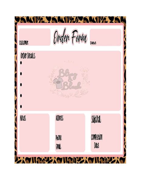 Cute Order Form Template Editable Sales Worksheet Custom Etsy