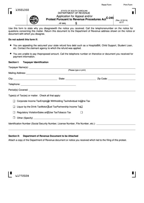 Form C-245. Web how to fill out and sign south carolina form c 245 online? 6/1/11) 6177 if you are appealing the seizure of your state refund for a debt such as a hospital bill, child support, student loan, etc., do not file this form.
