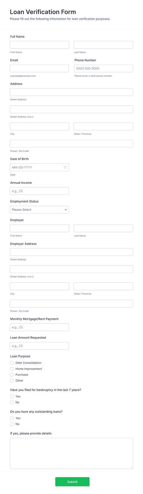 Loan Data Verification Form printable pdf download