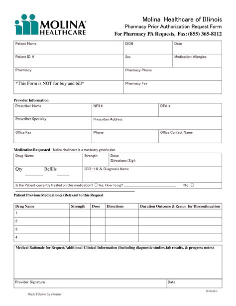 Molina Pre Authorization Form. Prior authorization/medication exception request form. 2023 medicaid pa guide/request form effective 01/01/2023.
