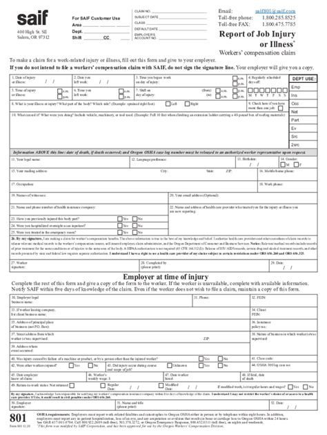 Oregon state legislature building hours: It is not intended to replace dcbs form 801: 1 each year, and keep it posted until april 30. 503.584.9805 forms 801 and 827: Call your saif corporation representative for assistance. No one else should make these decisions for you. Signature gathering firm registration (online form) sel 305 : You may receive medical treatment from the health care provider of your choice , including: If you do not intend to file a workers’ compensation claim with saif, do not sign the signature line. Web form 801, “report of job injury or illness,” upon your request, or when the employer has notice or knowledge of an injury or exposure.