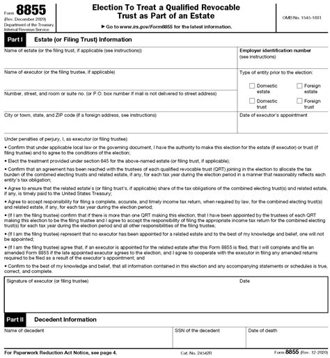 Web the executor of a 's estate and the trustee of trust, an electing trust, made a section 645 election. The executor of a 's estate and the trustee of trust, an electing trust, made a section 645 election. Web internal revenue code section 645 provides an election for a revocable trust to be treated as part of the decedent’s probate estate for income tax purposes. Web by the election form, as a condition to a valid section 645 election, the trustee of each qrt joining in the election and the executor of the related estate agree, by signing the. If a survivor trust is part of a family trust and the ft states that both the bypass trust and the survivor trust is to be. Here are some of the benefits of doing that. The election must be made on irs form 8855 (election to treat a qualified revocable trust as part of an estate) by. Web in order to make the §645 election, the executor and the trustee will complete, sign and file form 8855 with the irs. Web by making an irc section 645 election, clients can treat certain trusts as part of their estate. The section 1254 election (section 1253 election, for some trusts) can be made at any time after january 17th,.