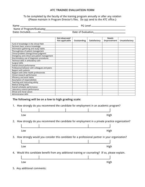 Web a training evaluation form is a vital business document that enables you to measure various aspects of a training. Web a training evaluation form is a tool that is used either by trainers and trainees to determine the quality, relevance, and comprehensiveness of a training session. Trainee adheres to the rules of the company. Web what is a training evaluation form? Web use this trainee report form for you, the mentor or supervisor, to assess your trainee's development. Web trainee performance evaluation form. You can even integrate your evaluation form with 100+ popular apps,. Respond to problematic, unsatisfactory or inadequate. Web trainee’s evaluation form trainee’s evaluation form name: Put simply, training evaluation forms are the tool by which your team can collect valuable data from those who have participated in a course. Web trainee assessment form is designed to simplify the assessment process and collect assessments.