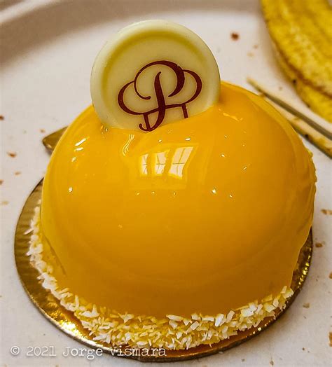 Mango Mousse Portos. Finished with mango glaze, finely shredded coconut, and white. Web glistening on the outside and rich on the inside porto’s mango mousse packs a punch.