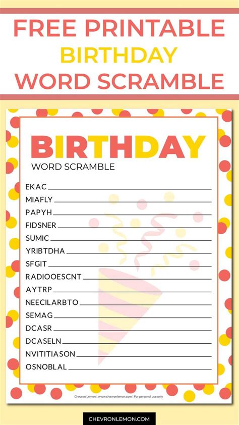 Web there’s nothing like some fun printable birthday trivia games to really put the guest on honor in the spotlight. You can plan the best adult game night and party if you know the right games to play. Check out all the pictures and descriptions below of these fun printable sweet sixteen party games. Web check out our printable birthday party games selection for the very best in unique or custom, handmade pieces from our party. Web we’ve got 12 free printable 21st birthday party games for you to download and play. These games are fun and age. Web a birthday word scramble game is a fun and interactive way to celebrate a loved one’s birthday. Web how can we make planning your birthday event easier and much more fun? The first type of birthday maze are traditional mazes with walls and false paths. Web popular printable birthday party games include scavenger hunts, charades, bingo, and trivia.
