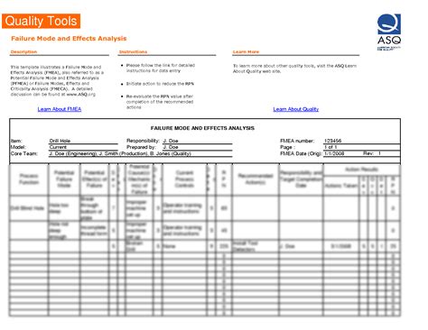 Asq Fmea Template. Web what is an fmea template? Web description failure mode and effects analysis (fmea) is a method that attempts to identify all possible failures that can occur.
