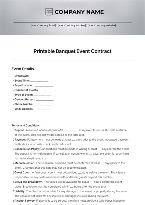 Banquet Contract Template. Day & date of event: Web banquet contract function name / event:
