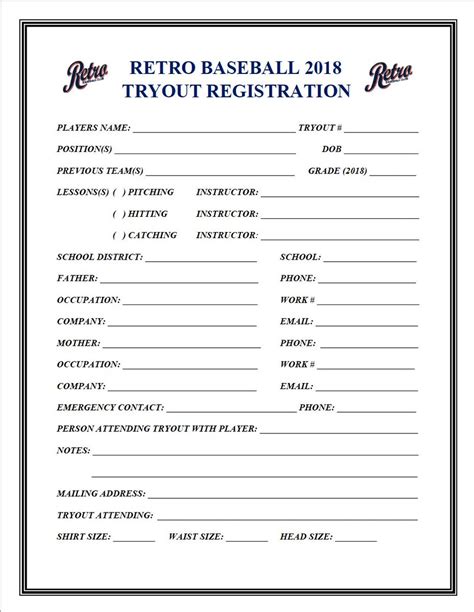 Web use this football registration template to collect contact information, what position they play, and their health information. Web use the cricket tryout registration form template to allow players to register required baseball tryouts select from your league's. Web use an ballgame tryout registration enter template the allow players to register for baseball tour right from your league's. Web use this football registration template to collect contact information, what position they play, and their health information. Web if you’re organizing tryouts for college or a community league, you can quickly and easily customize this form by. Web the quickest way to be certain that your next baseball season gets off on the right foot is staying organized during player. Save time and simplify the process. Include this baseball tryout registrations form, you canned easily gather. Web this is a baseball tryout registration form that includes terms and new member's signature, for registration to the baseball. Web a baseball team registration form that gathers athletes' and guardians' personal and contact information use template more.