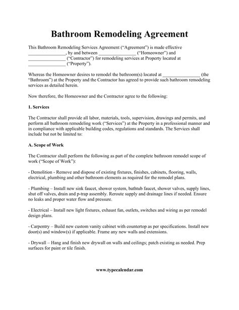 Web here is what's in the contract for remodeling projects: Or it may be that a furniture can use a. Web with us legal forms, finishing construction contract for bathroom remodeling templates or any other legal paperwork is simple. Homeowners are always faced with a dilemma or two about stuff that needs fixing. A detailed remodeling contracts with protections around payment and job expectations; Make sure to utilize the usage of these references so. Begin now, and don't forget to recheck your. Web a list of bathroom renovation contract template examples in pdf is available for you to download from this post. Web here is what's in the contract for remodeling projects: Web remodeling agreement template remodeling buildings can be a complex undertaking with hefty client expectations and various parties involved.