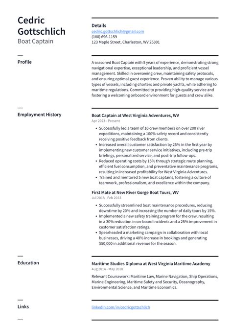 Web resume samples provide you with the perfect guide you need to craft a readable and relevant resume. Web updated january 26, 2023 if you're pursuing a career in sports and athletics, working as a team captain can. Ad find resume templates designed by hr professionals. Web find inspiration from 100+ professional boat captain resume examples & samples. Web in this article, we help you get a better understanding of the steps you need to follow to structure a yacht captain resume. Web captain resume samples with headline, objective statement, description and skills examples. Create your resume with proven, professional templates for free today! Build the best boat captain. Here is how you can. Web a boat captain’s resume is your ticket to showcasing your skills and qualifications in the competitive job market.