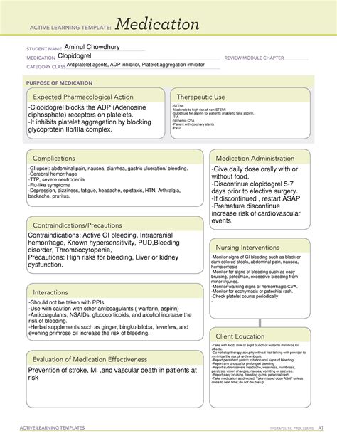 Clopidogrel Medication Template. Web active learning templates nursing interventions • monitor for signs of gastrointestinal bleeding (black or dark. Medication student name clopidogrel plavix medication review.