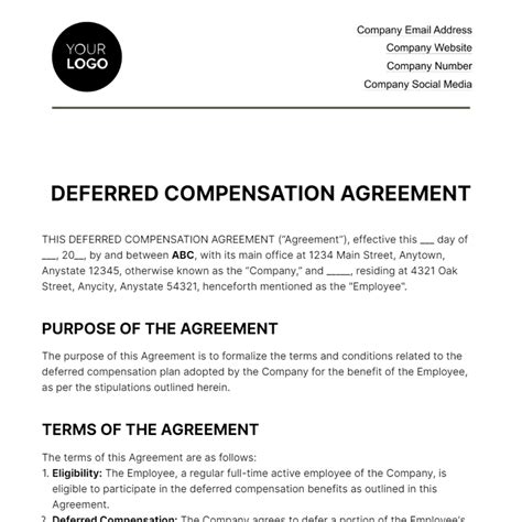 Deferred Compensation Agreement Template. Web deferred compensation plan participation agreement personal information paperless delivery consent paperless delivery: Web sample deferred compensation agreement conditions provision.