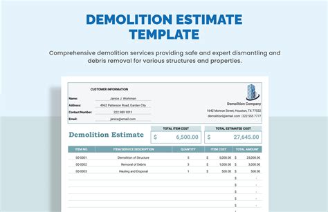 Web a demolition estimate sample by saldo invoice is a document that helps a client understand how much of their building. Web demolition estimate template is a customizable and printable job estimate template where you can print. Web free demolition estimate template service estimate free download this demolition estimate template design in word, google. Web choose from construction estimate templates available in excel, word, pdf, google sheets, and google docs. Web to develop a competitive demolition estimate, remember the following formula: Web demolition invoice template will allow you to clearly document the costs requiring payment for a demolition job that was. Web download the free demolition estimate template from billed to create detailed and accurate estimates that reflect your. Estimates, approvals, payments, all in one place. Web download this demolition estimate template design in excel, google sheets format. The problem is how much to mark it up.