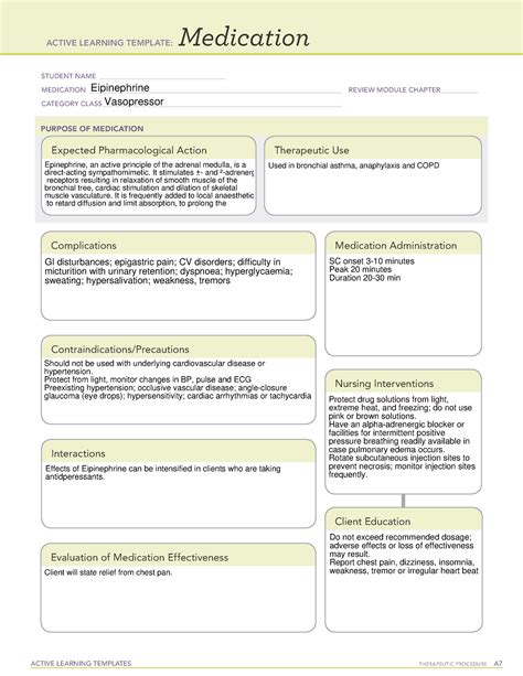 Epinephrine Medication Template. Epinephrine, an active principle of the. Medication jon thomas student name epinephrine.