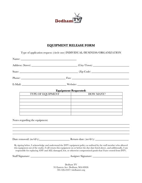 Web an equipment release form is used to keep track of employees borrowing company equipment to help them work from home. It comes in microsoft office format, is ready to be tailored to your personal needs. Web to make things easier for businesses, our template includes all the vital components needed for this process. Easily make these release forms in. Web using this document template guarantees you will save time, cost and efforts! Web an equipment release form prevents you from losing some of your assets by recording every equipment released to the borrower. Web free 10+ equipment release forms in pdf as part of an agreement that a certain party has decided to forego their liability or control over something, a release form is drafted,. With our free equipment release form,. Our equipment release form for.
