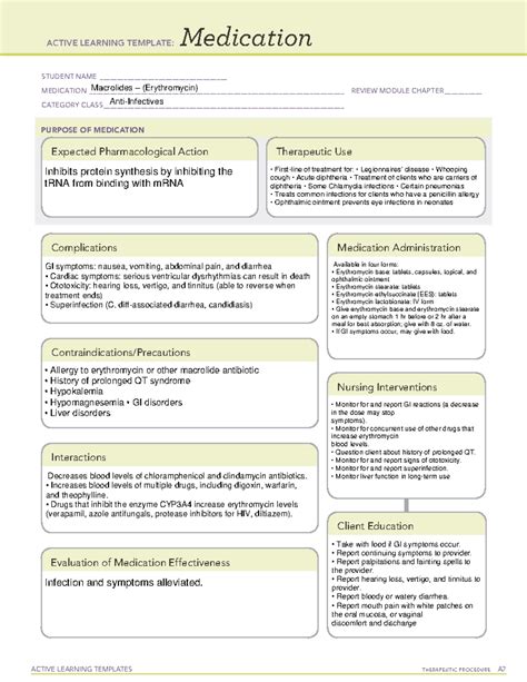 SOLUTION Ati active learning template medication erythromycin