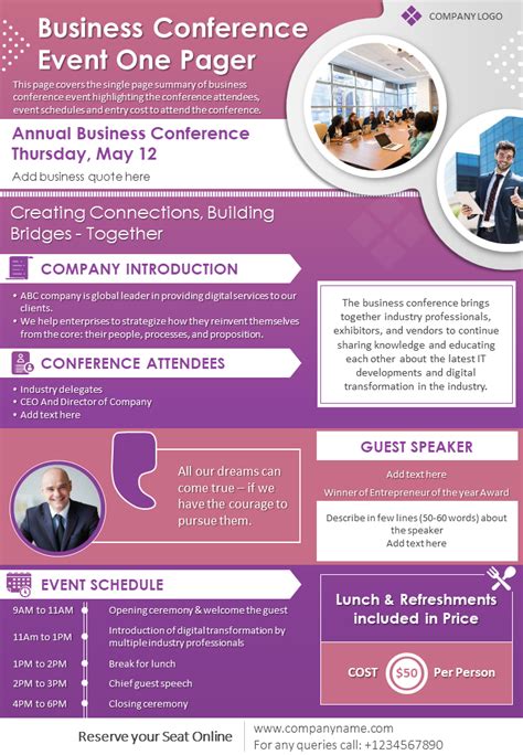 Event One Pager Template. Each review includes a full screenshot of the website. What is a one pager for a project?
