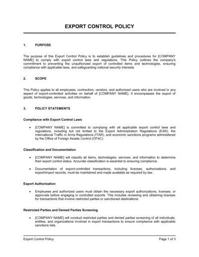 Export Control Policy Template. Web export control officer program (eco) office of export enforcement field offices. Web the purpose of cornell university’s export control compliance manual is to provide the basis for the.