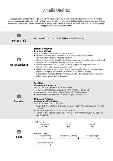 Foster Resume Template. Simple to use, no registration or cc required. Resume template for all job levels!