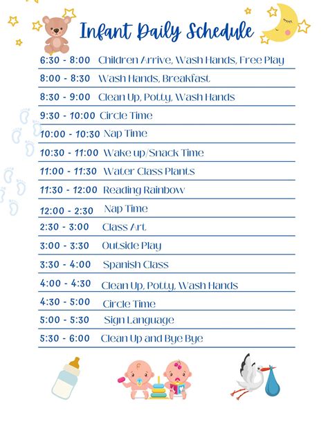 Infant Schedule Template. Web daily schedule for children under 12 months of age. Families can use this sample daily schedule to plan and create a flexible and consistent routine for their.