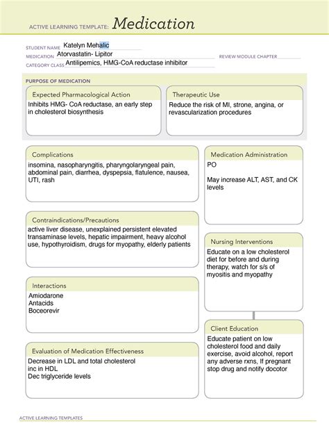 Lipitor Medication Template. Irregular results of liver function tests, which could. Web view atorvastatin ati med template.pdf from biology misc at california baptist university.