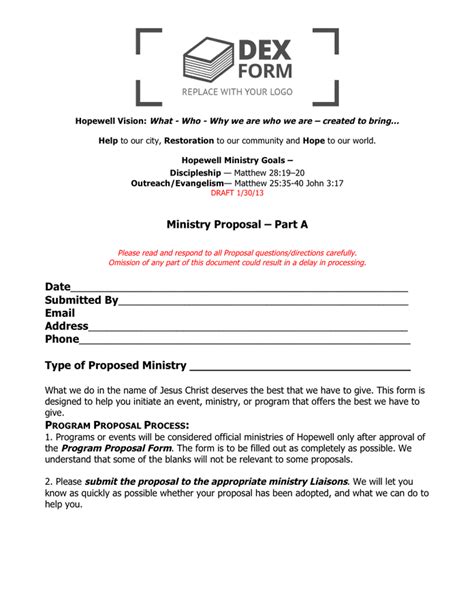 Ministry Proposal Template. Web complete church ministry proposal form online with us legal forms. Easily add and underline text, insert pictures, checkmarks, and signs, drop new fillable.