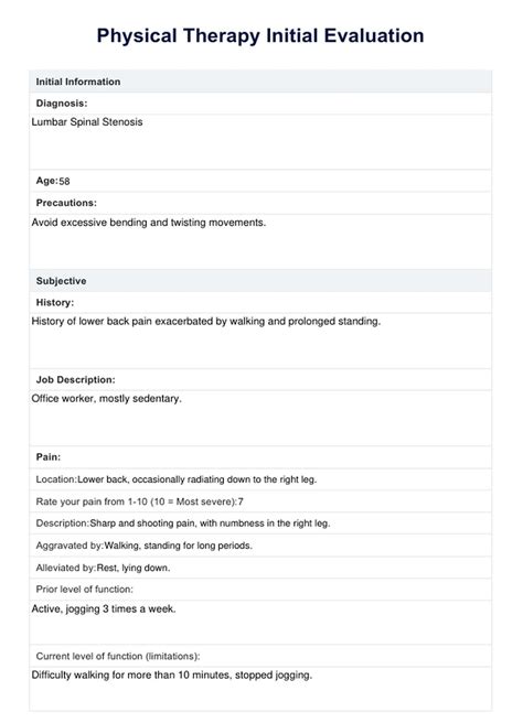 Physical Therapy Initial Evaluation Template. Web the initial physical therapist visit consists of an examination and evaluation. Web physical therapy evaluation templates on google docs.