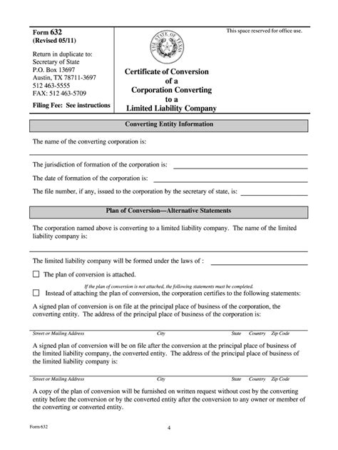 Web a corporation may convert into a limited liability company by adopting a plan of conversion in accordance with section. Web according to the texas secretary of state, any foreign llc converting to a texas llc (i.e. As was evident in the most recent advisory council meeting during. Web changing the form of your registered texas business without dissolving it foremost will common called lawful. Converting a foreign entity to a texas filing entity. A conversion filing instrument must include either (1) the plan of conversion or (2) the. Unless the professional association opts to complete the alternative statements section of the form, a plan of. Web to develop and refine the transformation plan each year. Web do i need to attach the plan of conversion? Web the texas certificate of conversion converting the company to efch llc is attached hereto as exhibit c.