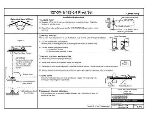 Rixson 128-3/4 Template. If more clearance is needed, a. This center hung pivot set has a standard top pivot (320) and a bottom pivot that mounts directly to the floor.