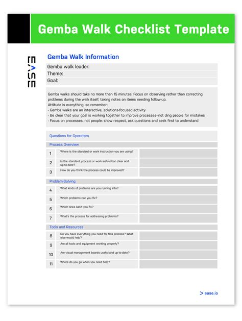 Sheet Gemba Walk Template. Web modern project & work management platform | smartsheet Web fill out our free digital gemba walk checklists which you can customize as you wish simply by using the app.