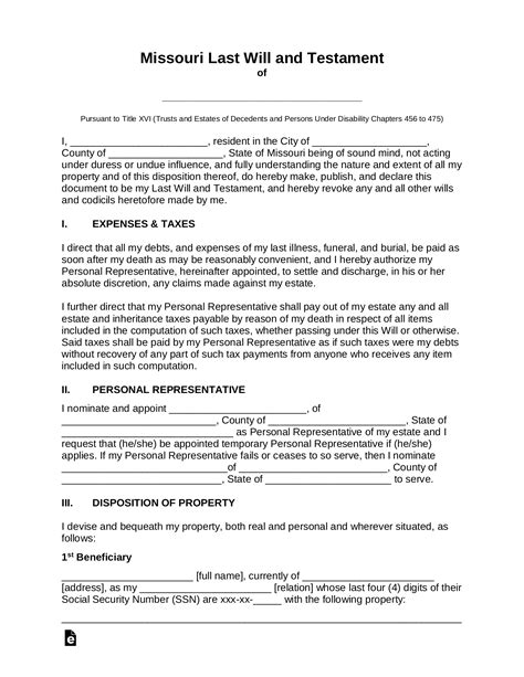 As a general rule, missouri does not recognize. Web freewill lets you make your last will and testament quick, easy, and completely free. Web the missouri last will and testament is a legal document that will guide an individual (testator) through the personal process of. Missouri has specific laws that affect how a last will ensures. As a general rule, missouri does not recognize. Web you can save time and money by making your own simple will. Web steps to create a will in missouri here's a quick checklist for making a will in missouri: You can download, edit, and print the. Decide what property to include in your. Web a last will and testament is a legal document you can use to control the distribution of your estate and protect your. Web description simple will template missouri the legal last will form and instructions you have found is for a widow or widower.
