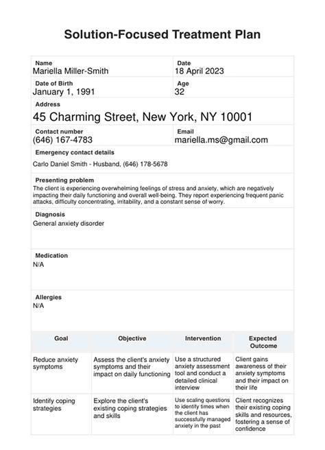 Web solution focused brief therapy (sfbt) was developed by steve de shazer, insoo kim berg, and their colleagues at the brief. Assessment of one’s overall health and wellness is covered under the duty of a therapist or a. You cannot forget about selecting a treatment plan template from our collection. Web this bundle includes 17 templates. Web pick a treatment plan template. Web 35+ treatment plan templates. Web developing treatment goals at the start of therapy can improve client retention, set a direction for future sessions, and help your. Web solution focused brief therapy (sfbt) was developed by steve de shazer, insoo kim berg, and their colleagues at the brief. Web free 17+ sample treatment plan templates.