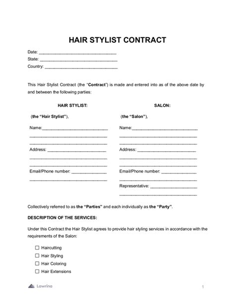 A salon independent contractor agreement establishes a binding. Web 5 key elements for your stylist contract template written by daisie team published on 21 july 2023 6 min read contents identify the parties define the. Jotform sign has you covered with this hair salon independent contractor. As a stylist, you want to make sure you are legally protected before providing any styling services to a client. Web create a high quality document now! Web looking for a quick and easy way to contract hair stylists to work in your salon or beauty company? Web styling agreement (personal/fashion) $220.00. Web create freelance design contracts with pandadoc's free freelance design contract template. Quickly add your business details, terms, and branding.