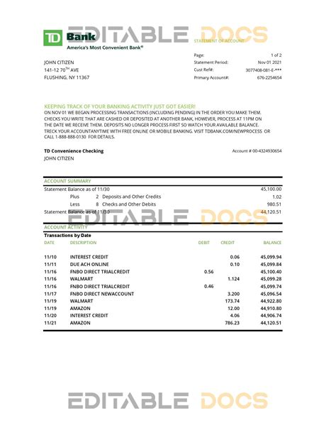 Web you can get a free bank statement template from your bank or other types of financial institutions. The transactions which appear on the statement include deposits,. Try it on easyweb step 2: Go to the statements & documents page to download or print online statements, go to the left menu and select statements & documents. Web this is a td bank statement template. Enjoy smart fillable fields and interactivity. Review, print, download or save your statements anytime; Web how to fill out and sign td bank statement sample online? On this psd template, you can put any name, address, account no., etc., and make your own personalized td bank statement. Get your online template and fill it in using progressive features.