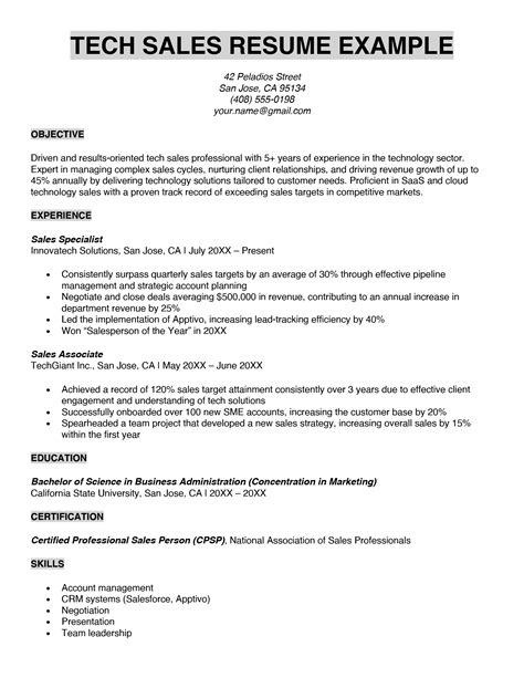 Tech Sales Resume Examples Resume Samples