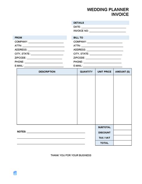 Browse Our Image of Wedding Planner Invoice Template for Free Event