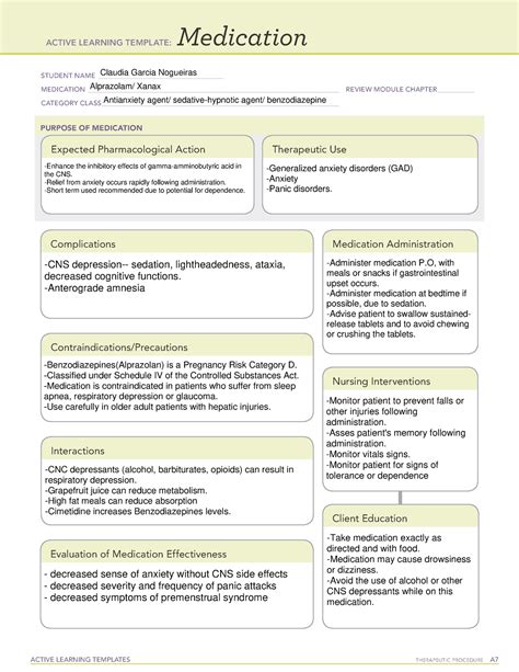 Web view xanax medication template.pdf from nur 211 at southern technical college, fort myers. Benzodiazepines belong to the group of medicines called central. Medication cammetta gordon student name xanax alprazolam. Web september 2, 2023 at 7:00 a.m. Web the structural formula is: Medication student name _____ alprazolam / xanax medication. Includes pharmacological action, therapeutic use, complications, contraindications,. Web complications dizziness, drowsiness, lethargy contraindications/precautions contraindicated in: Web alprazolam is a benzodiazepine. An estimated 30 million adults in the united states take benzodiazepines such. Web view xanax medication template.pdf from nur 211 at southern technical college, fort myers.